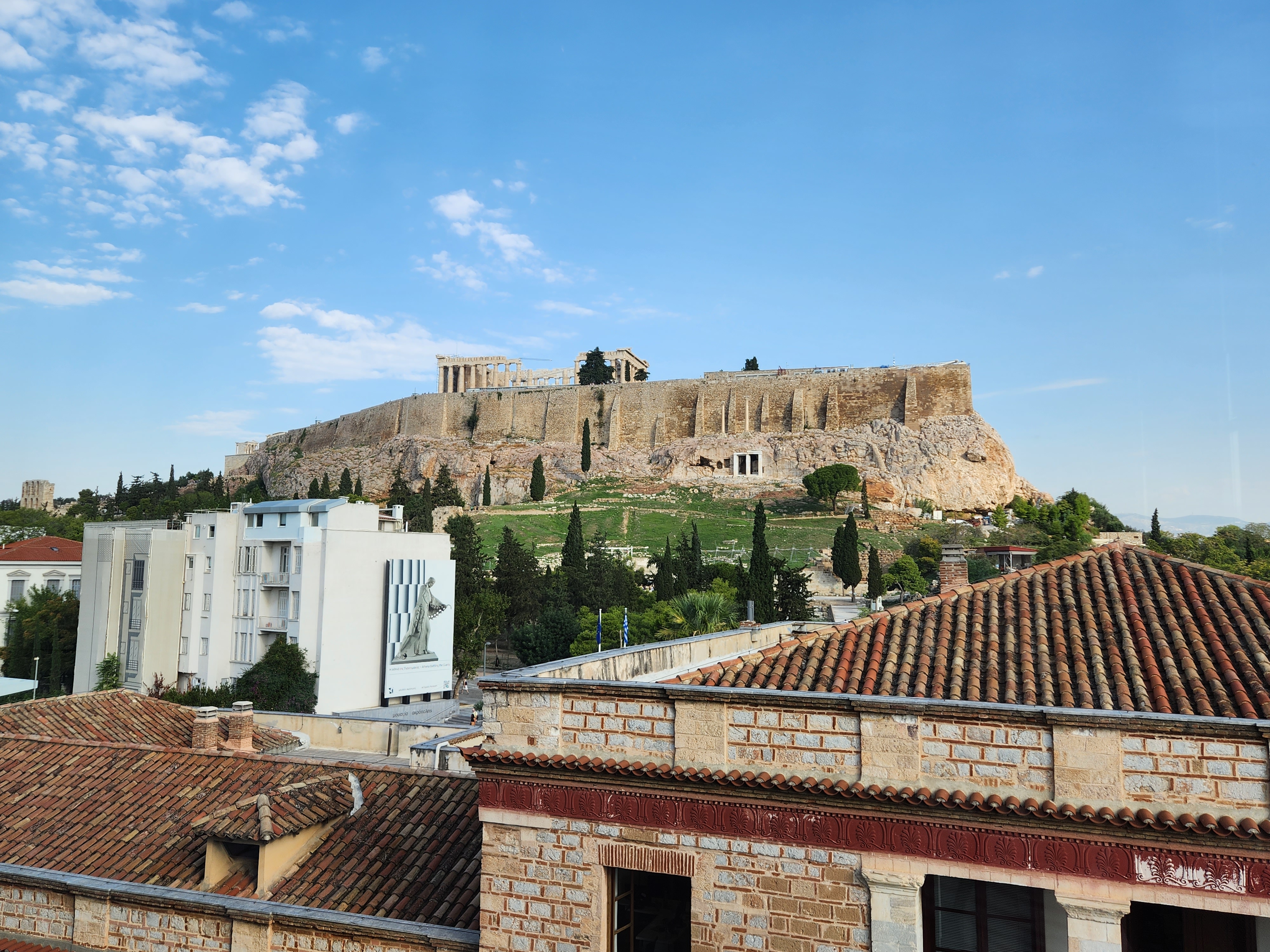 We had breakfast at two different spots during our trip: on the rooftop of our hotel as well as while visiting the Acropolis museum. Both spots have outdoor seating with wonderful views of the city. The breakfast menu at the hotel catered more toward the tourists staying there, while the museum café serves traditional Greek fare.